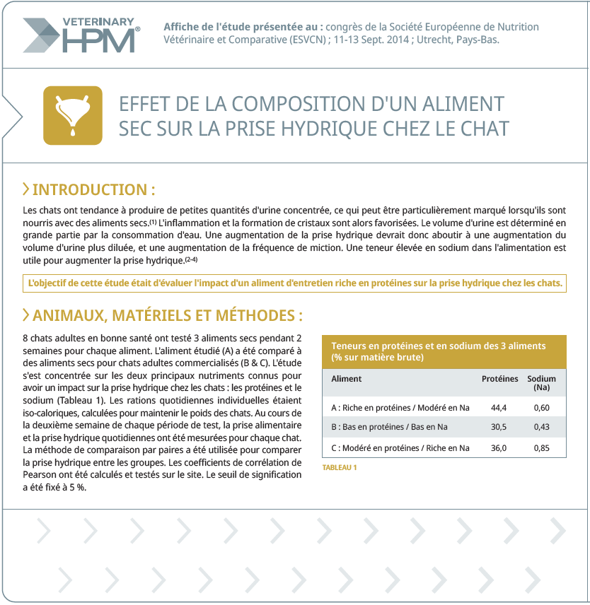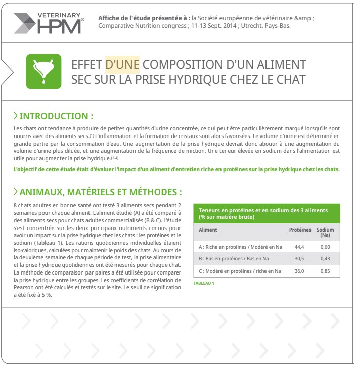 Etude 2015 - Effet de la composition d’un aliment sec sur la prise hydrique chez le chat