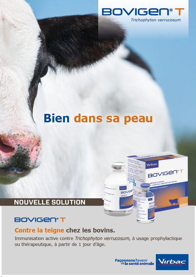 Le vaccin est indiqué chez les bovins pour l'immunisation active contre Trichophyton verrucosum, à usage prophylactique ou thérapeutique, à partir de 1 jour d'âge. Boîtes de 1 flacon de lyophilisat + 1 flacon de 40 mL de solvant et boîtes de 5 flacons de lyophilisat + 5 flacons de 10 mL de solvant