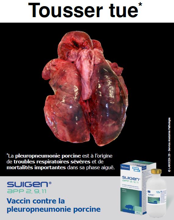 Vaccin contenant des souches inactivées d’Actinobacillus pleuropneumoniae sérotypes 2 et 9, 11, ainsi que les anatoxines APX I, APX II et APX III Adjuvant : Montanide ISA 35 VG Flacon de 50 ml équivalent à 50 doses