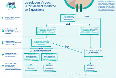 Basée sur les recommanda- tions actuelles (Référentiel pour le traitement sélectif au tarissement, SNGTV 2023), la stratégie de tarissement est une prescription, sous la responsabilité du vétérinaire.