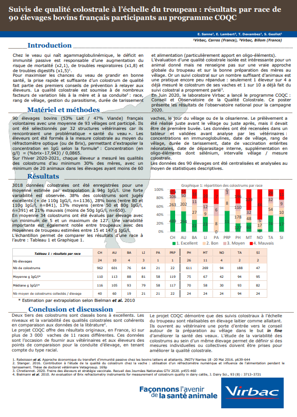 C’est pourquoi, nous avons tout de suite adhéré au projet COQC lorsqu’il nous a été présenté par notre délégué Virbac. Ce projet était la suite logique pour avoir du recul sur les données que nous récoltions chez nos éleveurs. C’est très intéressant de connaître avec exactitude les différents facteurs qui jouent un rôle sur la qualité du colostrum et d’avoir les données concrètes pour appuyer notre discours auprès des éleveurs.